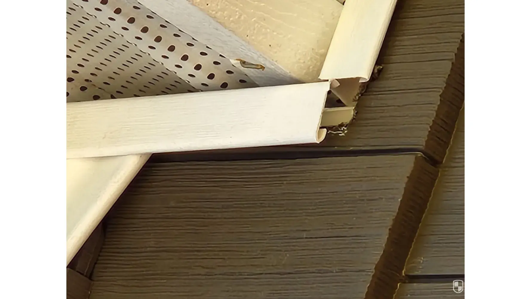 Outdoor soffit panels (3) blew off showing only 3 roofing nails hold each panel.