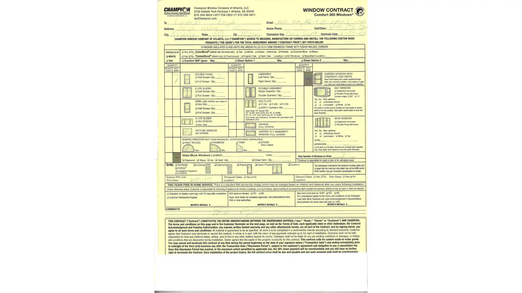 Champion sent someone to install the windows. I asked the installer about the windows not having grids on the day he arrived at my home. The installer made a call and after the call he said to me someone will come out to replace the glass with windows that have grids in about four weeks. The installer gave me a Champion customer service agreement on the day...