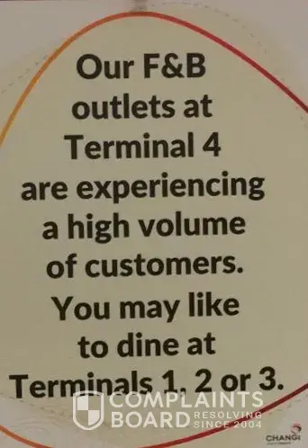 I understand that CAG is trying to pre-warn visitors from overcrowding, however if this is the decision, CAG should have an estimated allow visitors into T4 and not encourage food tenants from increasing food quantity.