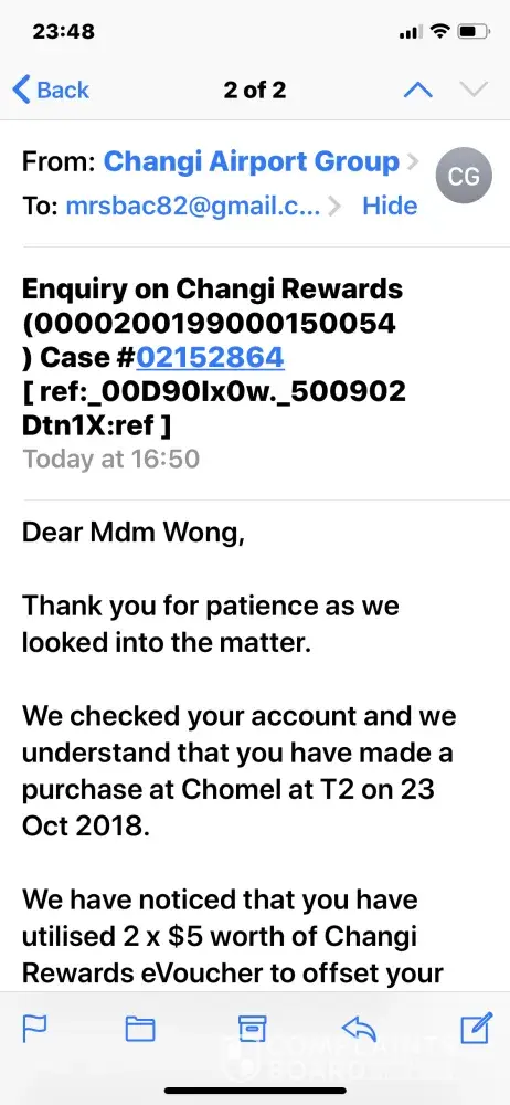 I am truly disappointed in the world best airport inefficient Changi rewards team that takes 20 days to respond to my feedback and gave me a desultory investigation result.