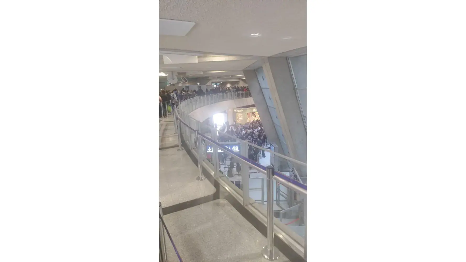 Standing for atleast 2.5 hrs now in que with no sitting place and can not even move out for toilets and or eating.