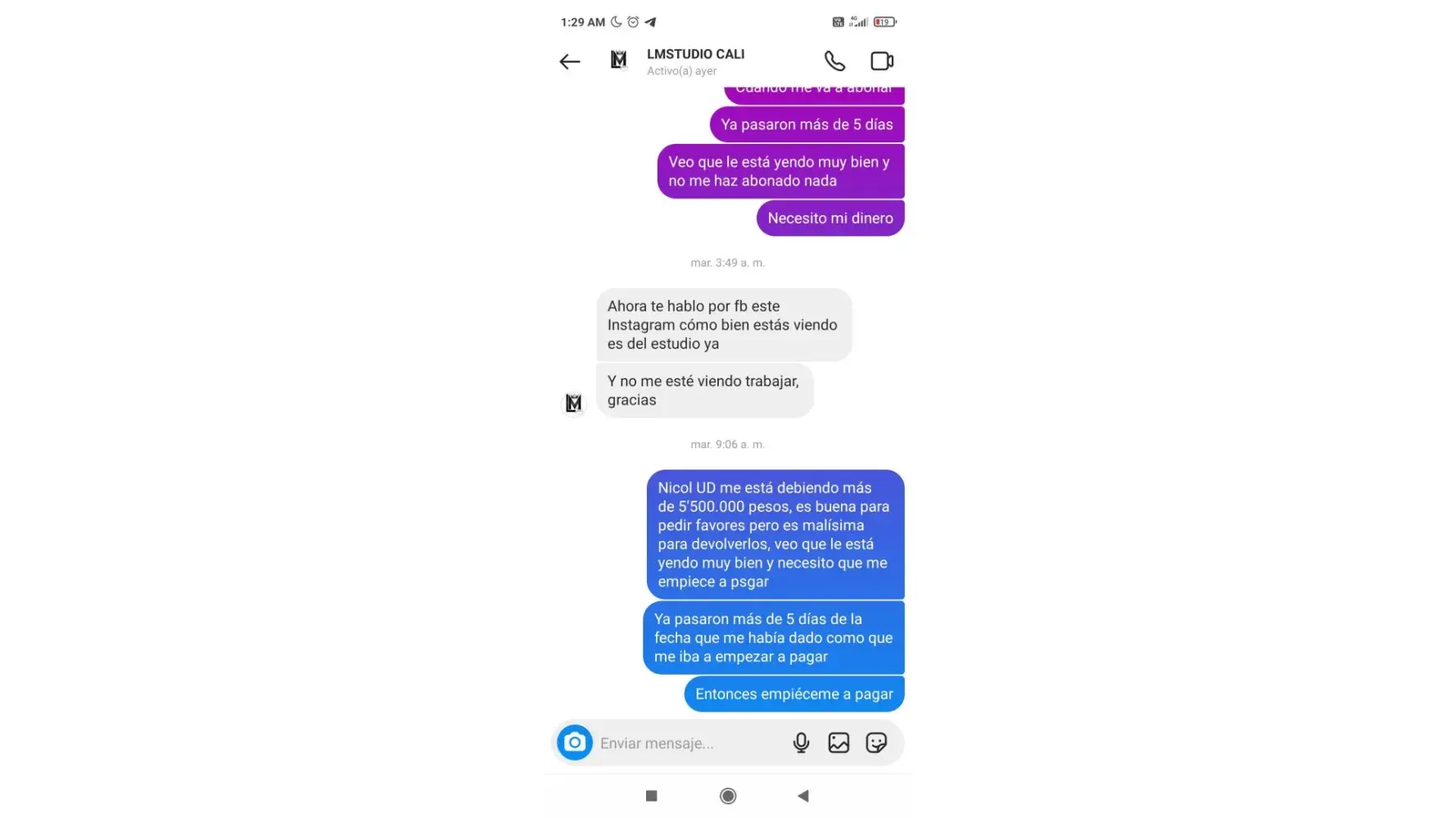 A model who used to work with us and ended up owing us money from some rent money we lent her