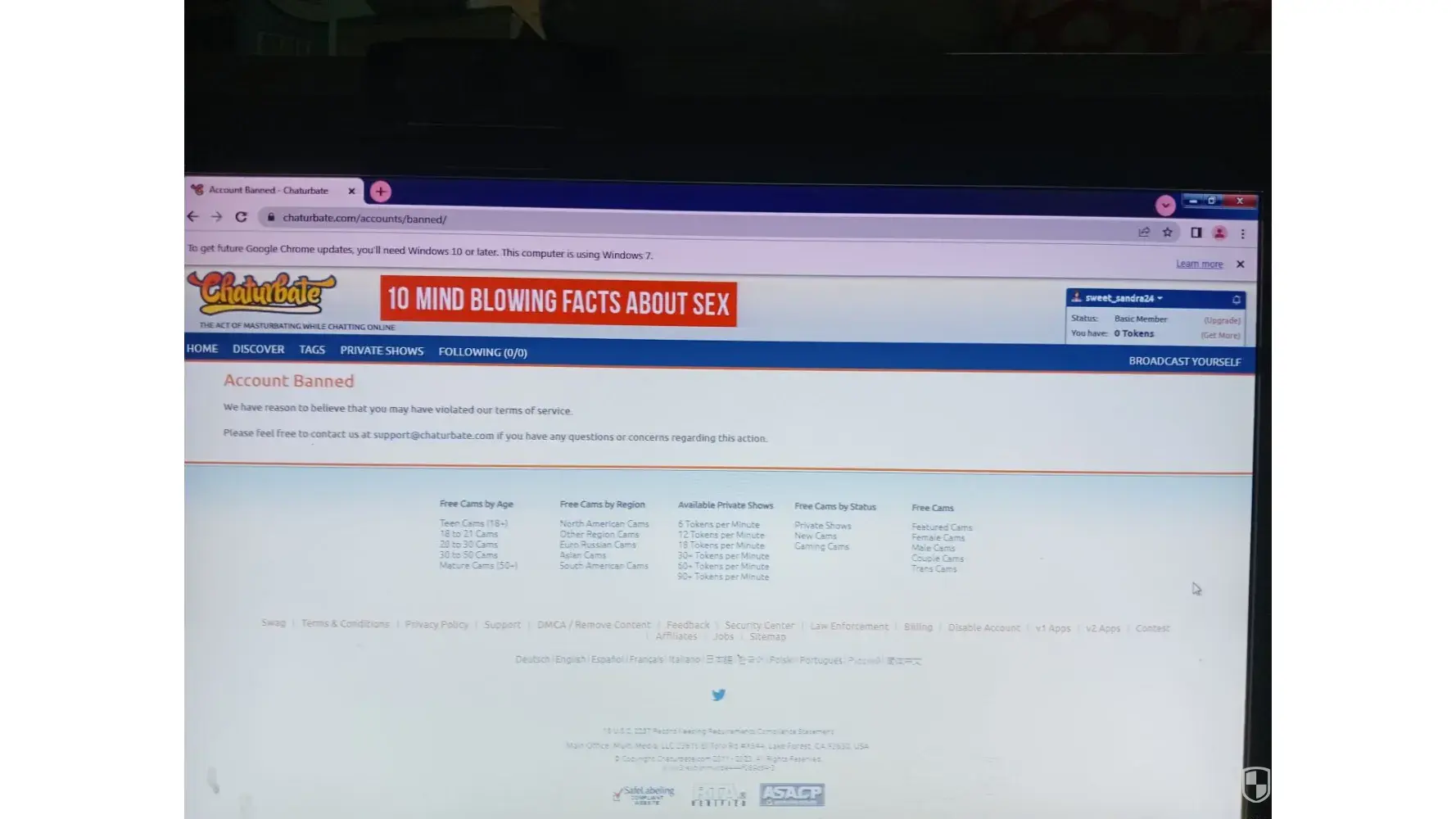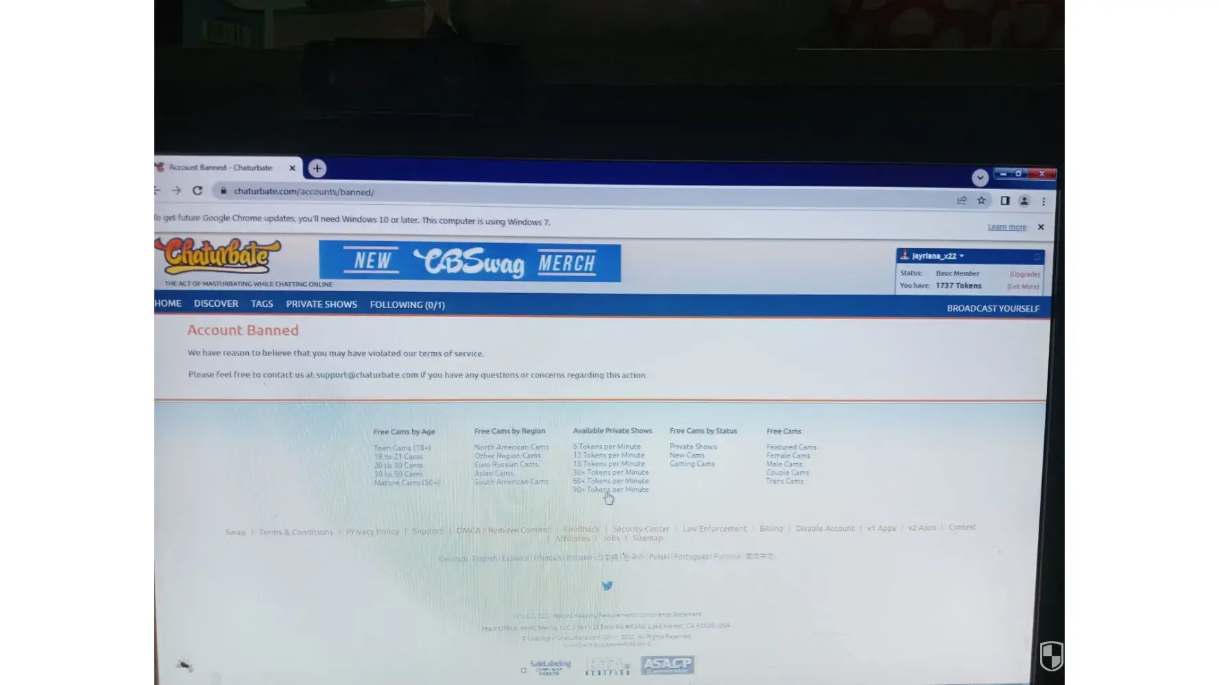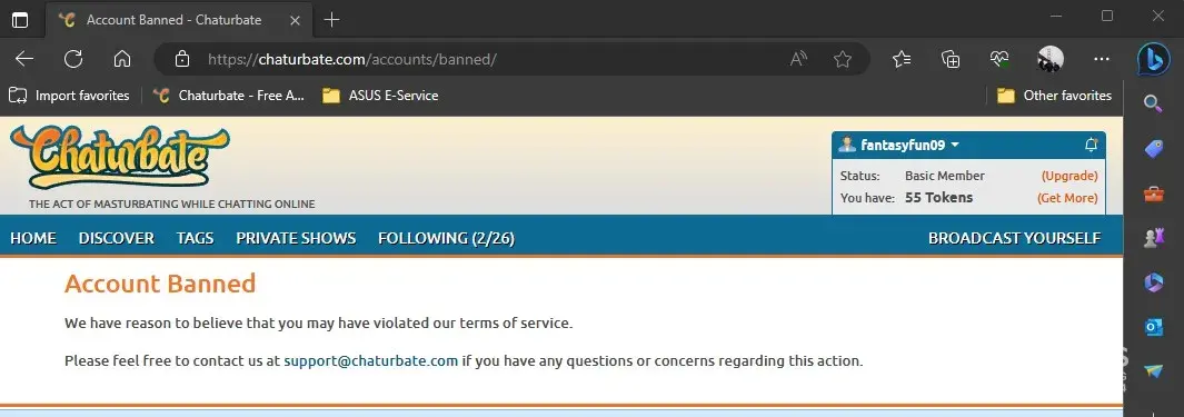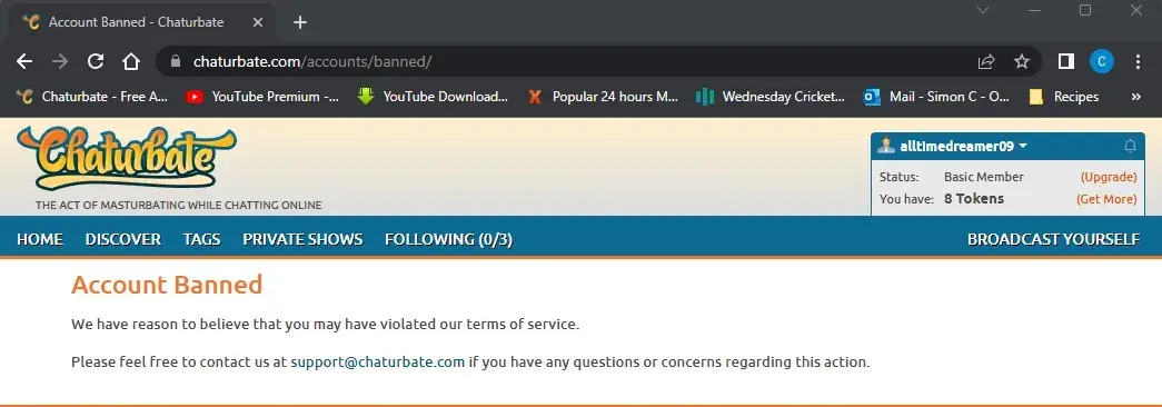 It’s unbelievable that I’m not only still banned, but have never been provided any explanation nor refund of token purchases processed by Chaturbate and being banned from new accounts with different email addresses which weren’t ever even used..