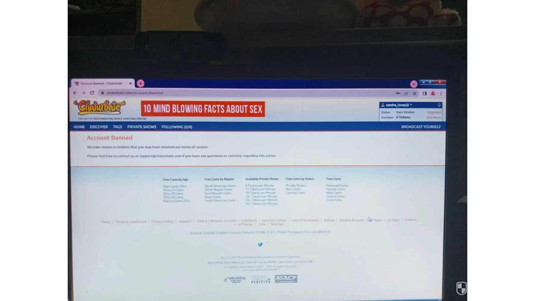This is sandra_loves23 on February 23, 2023 I'm done summited both passport and postal id and I'm done sign of agreement and it's say account banned As we trust you are aware, your ability to access your account(s) has been disabled; and, your ability to access your account(s) will not be restored, as your ban from the Chaturbate platform is permanent. Please note that should you access any accounts in violation of this permanent ban, such accounts will be subject to termination without warning and any amounts associated with such accounts will be deemed forfeit.