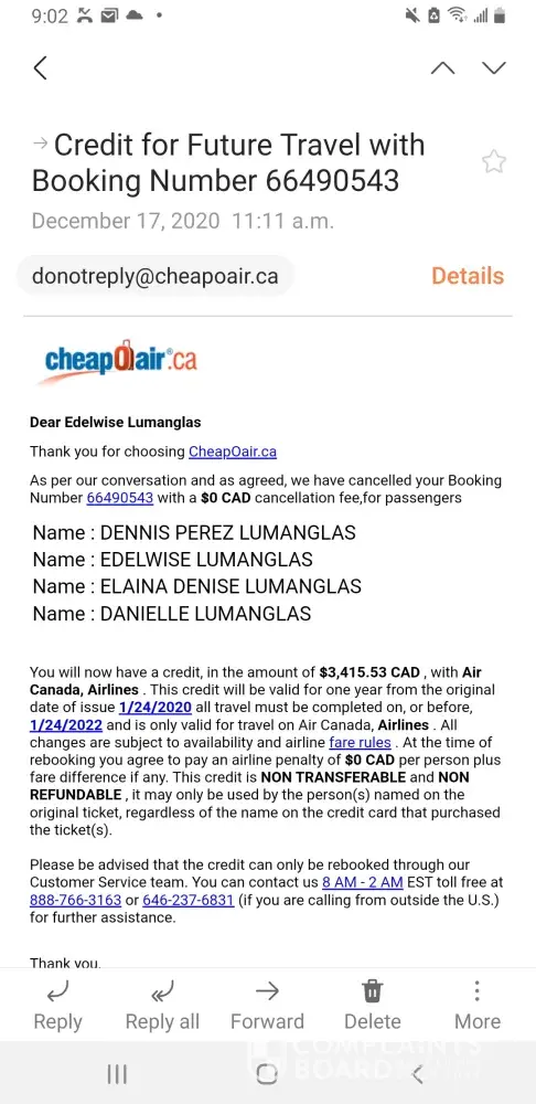 I booked a flight for me and my wife to visit my son, due to 90 year old mother getting an illness, we had to cancel our trip. Cheapoair was not understanding, gave us a run around by telling us we had to contact the airline directly, who then told us we had to contact Cheapoair. Customer support does not help or assist at all. The are only good at providing excuses on why they can't help you.. I will never use this company again, especially after eating the total cost of my trip. Worst company ever…