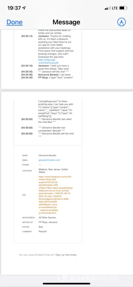 The following morning, Tuesday August 10th, I started a chat discourse on the CheapoAir website. I did this instead of a call because I wanted everything in writing. The chat lasted approximately 3 ½ hours with no resolution. Once again, I was asked why I did not get on the flight - and once again I asked, "Would you leave your son behind?!" At least this agent agreed that he would not. The agent was not able to reach anyone from Delta Airlines so he said that the CheapoAir Waiver Team would contact me in 3 - 5 business days.