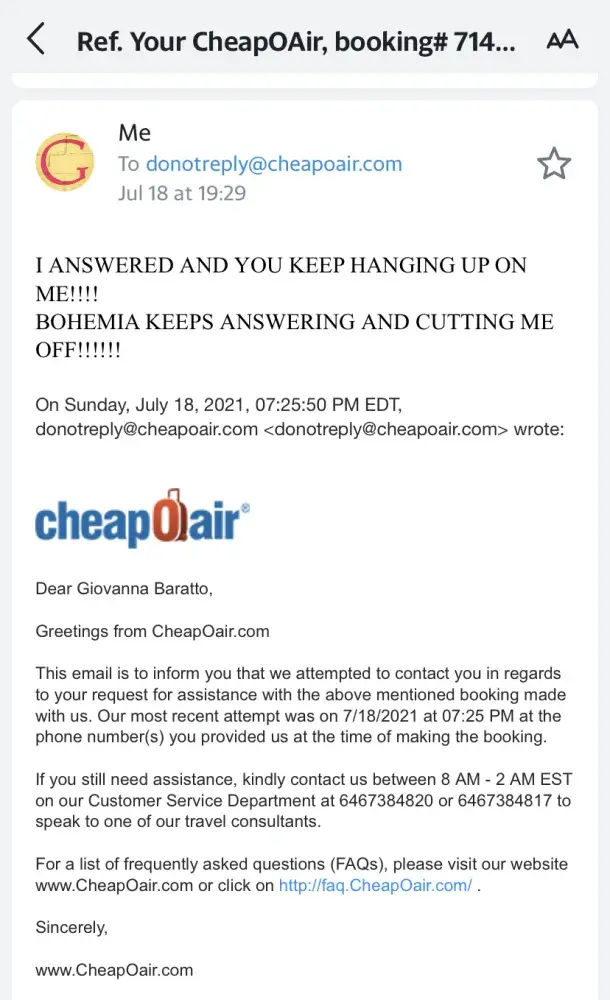 Now my family are booked to travel back without me and I will have to pay those cheapoair $4000 for their agents' laziness and misinformation.