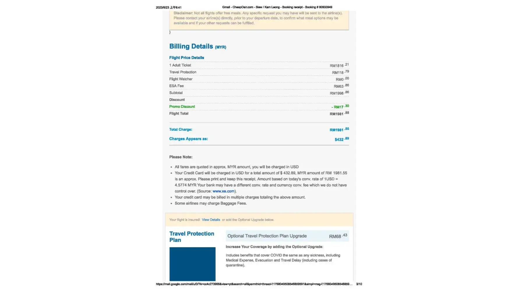 CheapOair.com Booking # [protected]
