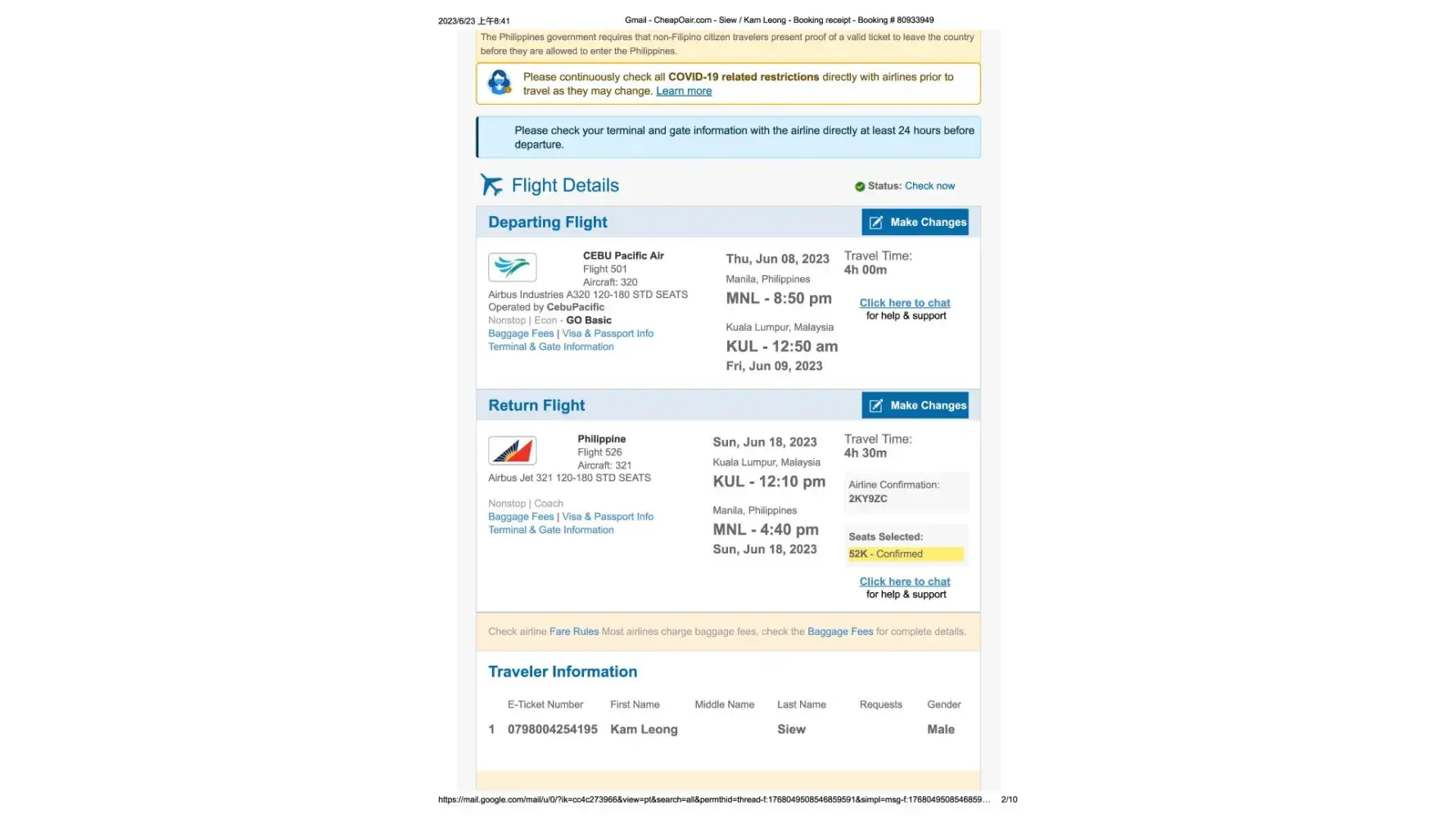 I have booking my flight from Manila to Kuala Lumpur as below: