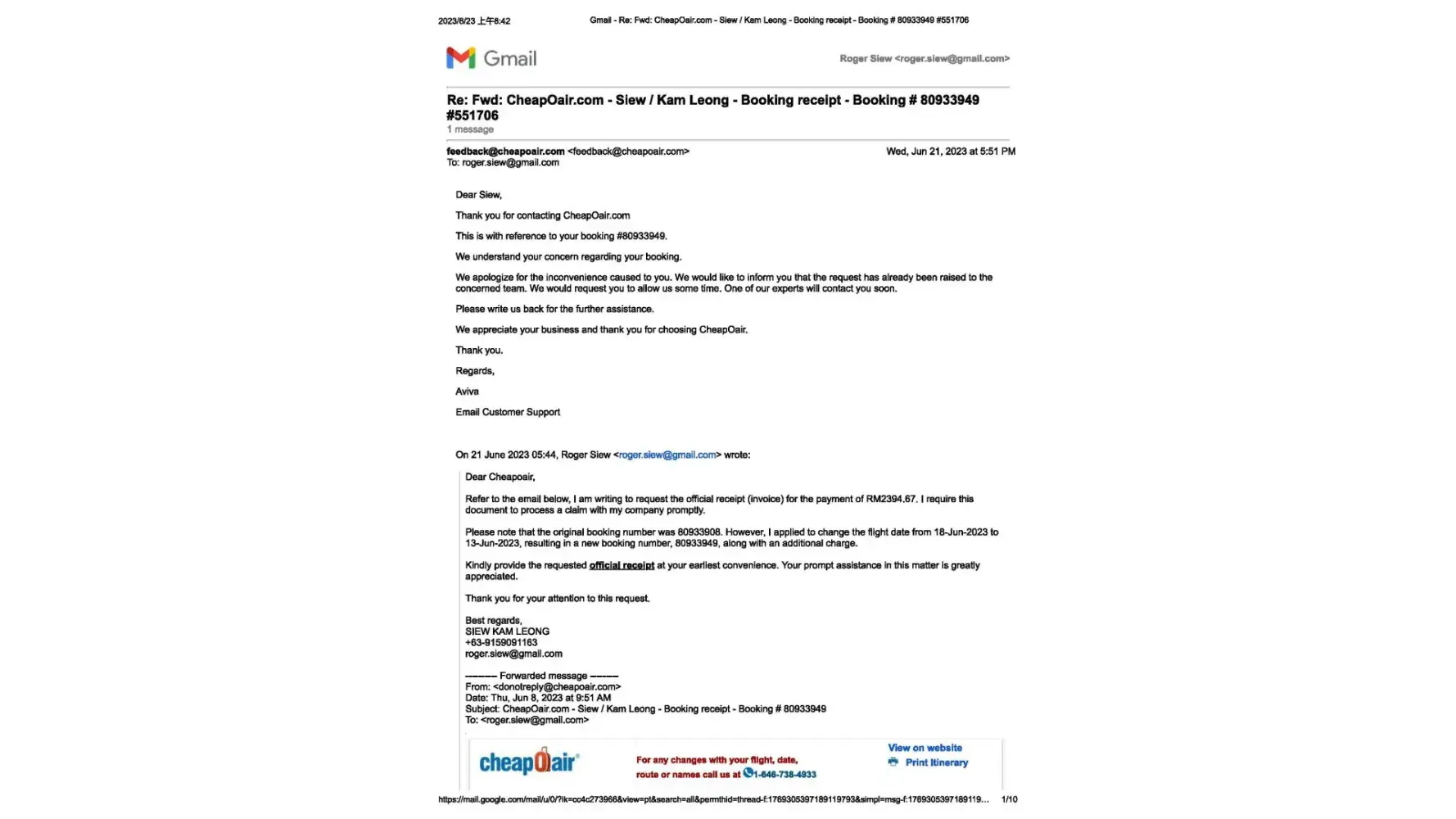 Three months of no $631 refund from Cheapoair.