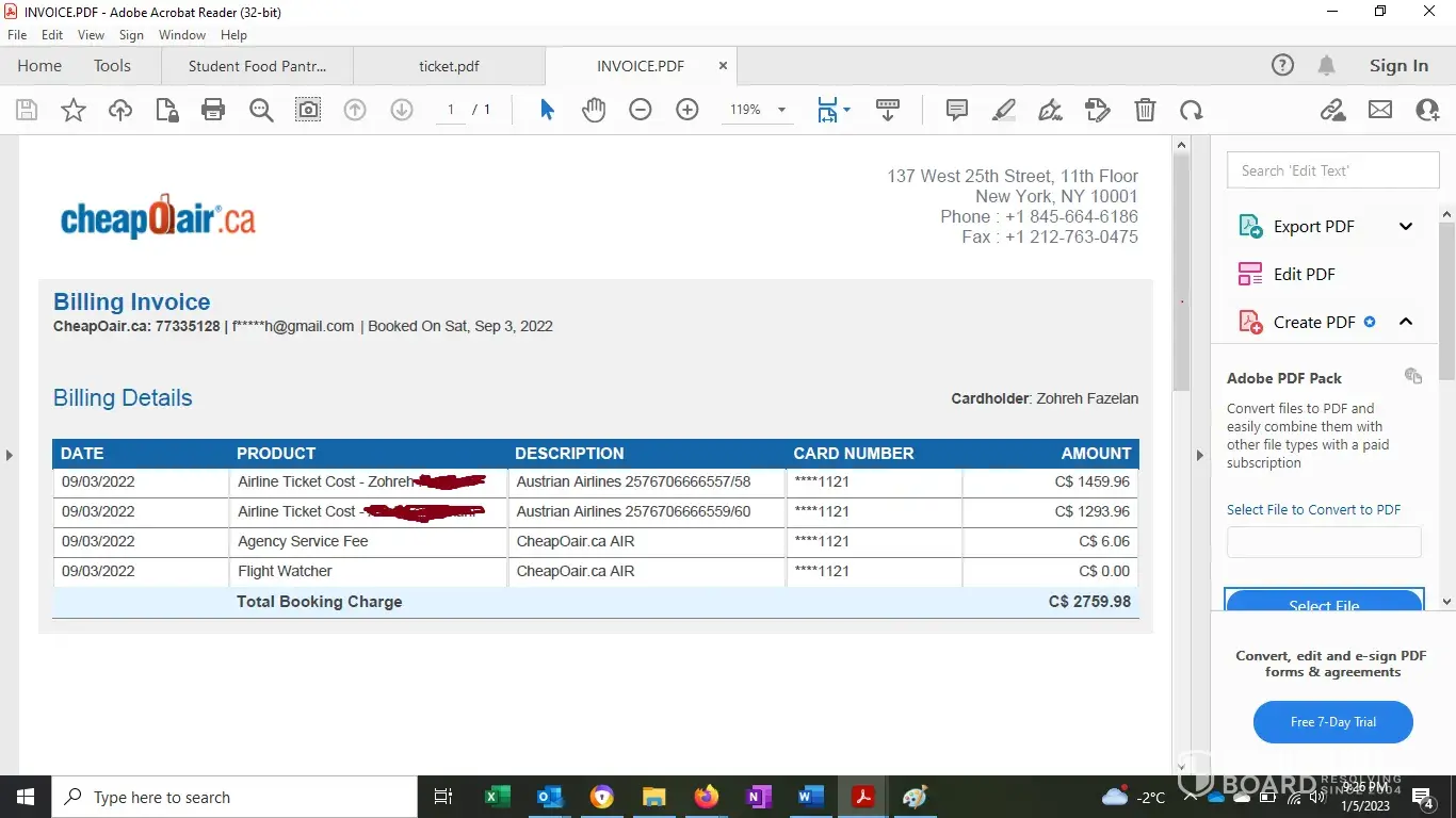 Desired outcome: I would like to be refunded of the extra charges that CheapOAir made to my card