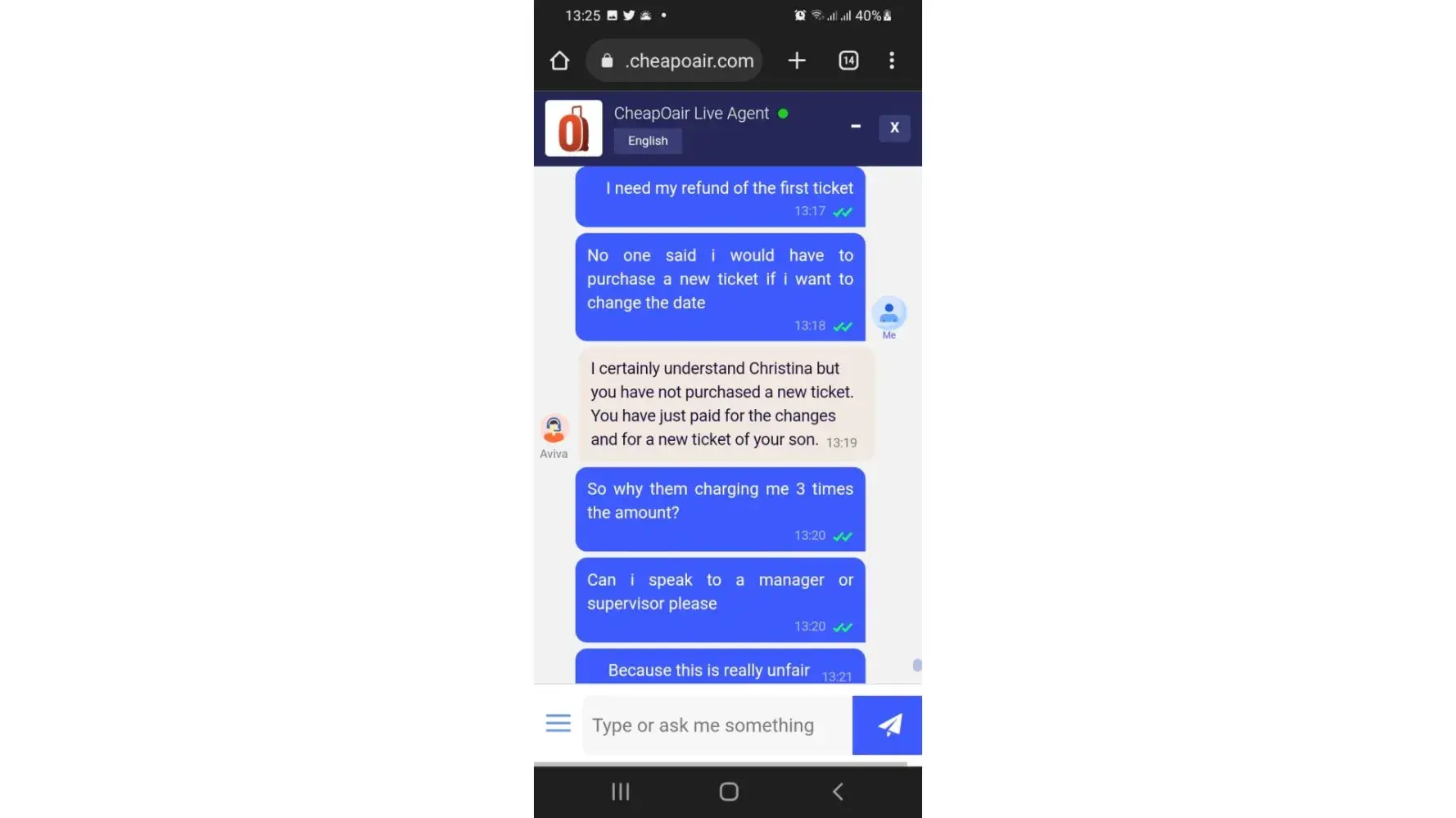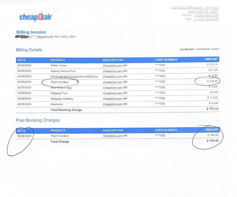 I'm complaining about being over charged by CheapOAir