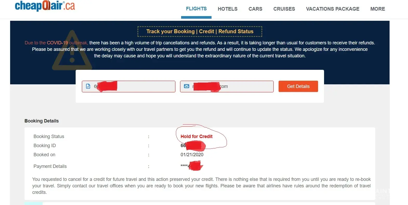 • Due to the COVID-19 outbreak, there has been a high volume of trip cancellations and refunds. As a result, it will take longer than usual for customers to receive their refunds. We apologize for any inconvenience the delay may cause.