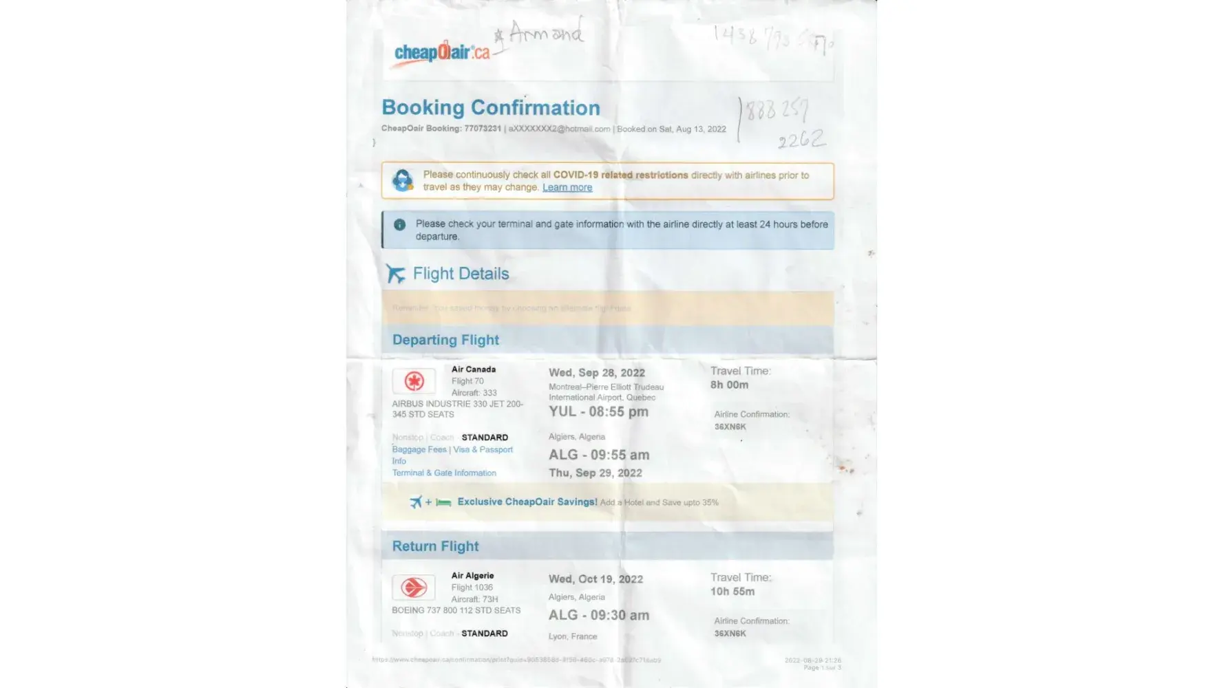 I purchased two bookings with CheapOair