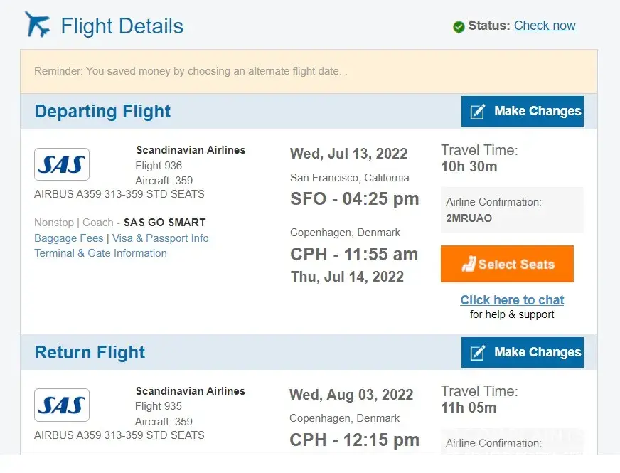 I booked two round trip direct flight tickets from San Francisco to Copenhagen for my elderly and disabled aunt and uncle. Their scheduled and confirmed departure date was on July 13, 2022 at 4:25 pm. In fact I called CheapOair on July 12, 2022 at around 7:00 pm and a CheapOair agent confirmed the flight departure time and assured me that everything is OK and on schedule.