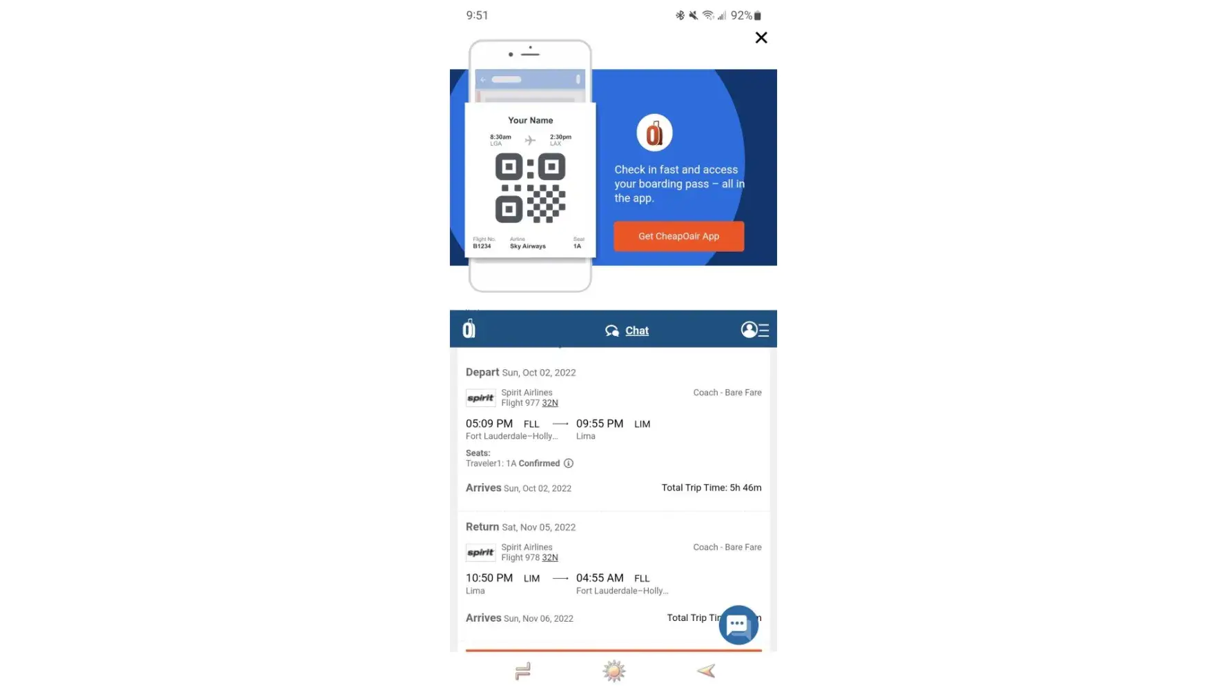 I went to cheapoair.com on July 31st 2022 to look for airline fares from Fort Lauderdale FL to Lima Peru, departing October 2nd 2022 coming back on November 5th and I found an airline ticket for $298.99. I though it was a good deal so I went ahead and started to do the booking. I was doing all this on my phone. After I started to do the order process, then I saw different pages diceiving pages like choose your seat that page didn't show there was a charge for certain seats so I picked my seat. Then I picked the cancel for any reason option $35.88. I thought I purchase an airline ticket for $298.99 + the cancel for any reason $35.88 = 333.88. Then, I look an email that said my flight was returning on November 2nd! When I choose November 5th!