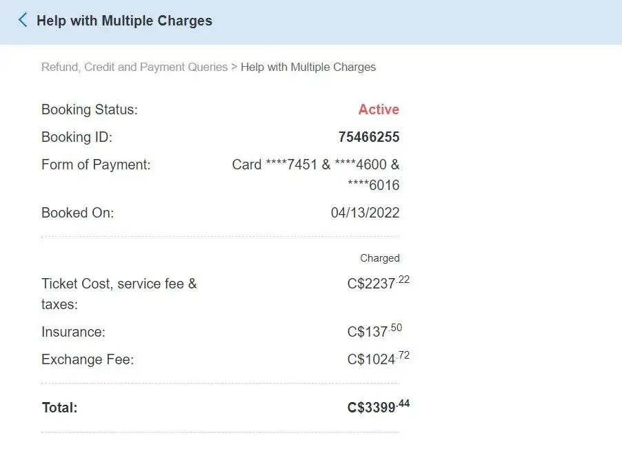 CheapOair Booking: [protected] | [protected]@yahoo.com | Booked on Mon, Feb 14, 2022 | 0 points | Tier: Silver total charged $2496.00 I speak to cheapoair they don't want to give me my money back to my account alsothey told me call airline aircanada I did they don't have my money cheapoair is holding my money I hope you will understand and help me to get my money back to my card I will never do any business with your company again very bad service they lie to me so any way I hope you will understand and help me to get my money back to my card today cheapoair customer service total unhelpful nit good at all every time I call they lied to me I hope you will help me to get my money back to my card if you have any additional questions please feel free let me know thank you