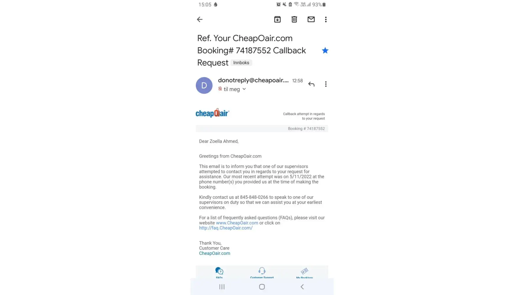 Below are the snapshots of the mails i received from Mr Stefan(cheapoair waivers team)