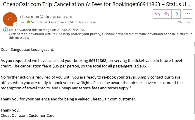 We will not use CheapAir again. We donated $196 to their bottom line.