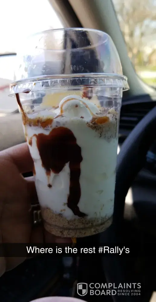 This Rallys is located on the corner of Saginaw and Fifth street in Flint Michigan, my husband Ruben ordered this on our way home we had death in the family, we live at 114 Killiam Dr Lapeer Michigan 48446. He wanted to stop, there were no lights on at the drive thru and the marquee sign which advertises a special was not lit as well. I thought they were closed. We were the third vehicle in line. We ordered at 9pm, we did not get up to the pay window until 9:25pm. Ruben made a comment to the young lady operating the cash register that our drink should be free and she commented we don't do that at this Rallys. If you would like to talk to him he can be reached at [protected]. This service is the worst ever. I work for State of Michigan at the Secretary of State which is the DMV and my staff and I never treated our customers like this. The young lady with long braids that waited on us was very curt and by the shake being soupy we poured it down the drain when we got home.Try to get your staff together at this branch. This occurred 05/02/2018.