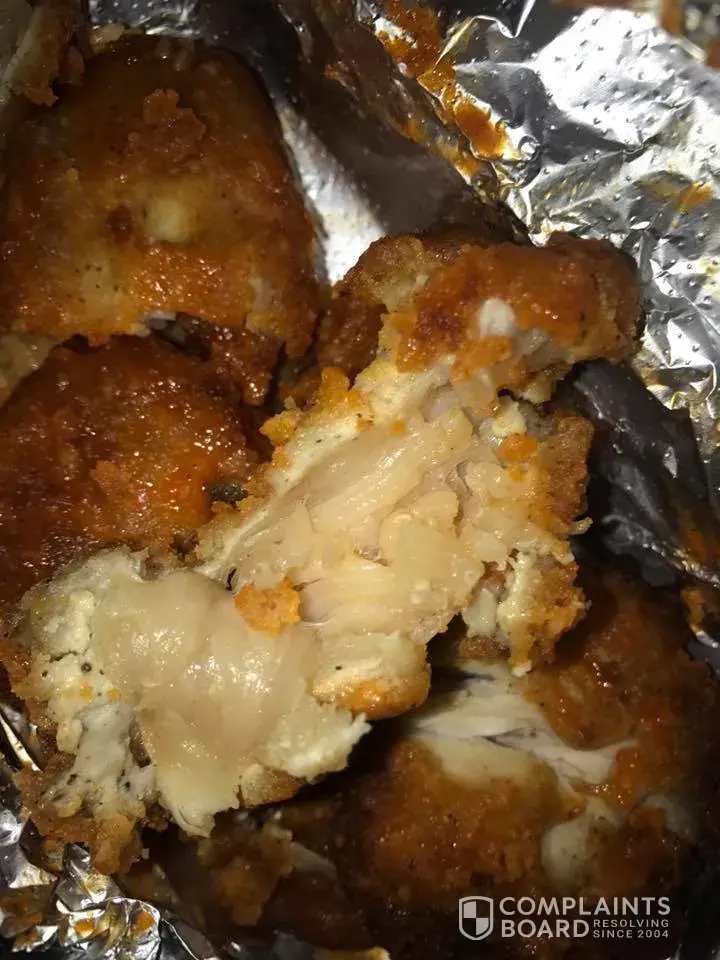 Friday 10/06/2017 I ordered a 5 piece boneless wings. When I got home I ate one but as I ate and swilled it I noticed it was a bit rubbery. So I checked the next one before eating anymore and there it is raw chicken! I called and all I was told is I can get my money back. This is beyond ridiculous! Time we go to rallies its something wrong with the order but this time i'm taking action to speak to my legal adviser. I had enough of this foolishness at 444 lapalco blvd, gretna, la 70056!