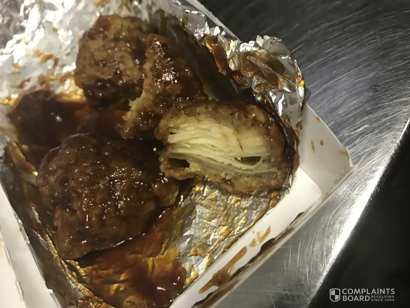 When I got home and proceeded to unpack my food the chicken box was dumped inside the bag, not in the box.