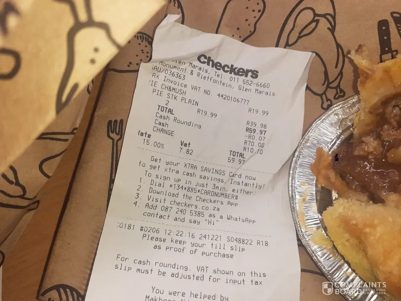 Hi.. Im lesego. I bought pies from checkers today and after taking a bite I realised they were rotten. Went back to the shop to return and the rude manager who didnt greet me was called to authorise the return came, he was told about the rotten pies and he just said okay, authorised and walked away. He didnt even apologise or ask about the customer who took a bite of their rotten pie that says on the pricing "sell by 25/12/2021.. Which was a total lie as the pies were already had boiling bubbles and mould in them. I couldnt see as they were covered in pastry. He didnt bother to check the pies or ask me anything it was all normal to him to have such a stinking pie bought by a customer, as he walked away I asked the cashier about his behaviour and she tryed to call him as he walked away and said she will call him to apologise but he didnt care so I told the cashier to leave him. How did he even become a manager if he doesnt even know the basics of customer service. I buy there every day and I was so suprised by his service. Werner simply cares about making sales and not what is being sold to customers. The food they claim is freshly baked is food poisoning. But tgen again from his behaviour I dont expect tge stuff to do better.