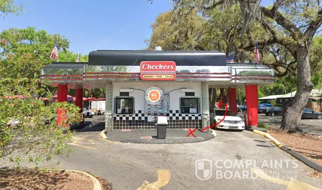 Late last night, some friends and I were leaving a show in Downtown Gainesville. On our way back to my car, we were passing the Checkers at 912 W. University Ave. I wanted to stop and just get some fries but a sign said the walk-up window was closed. The drive through window was not even 3 feet to the right (see photo).