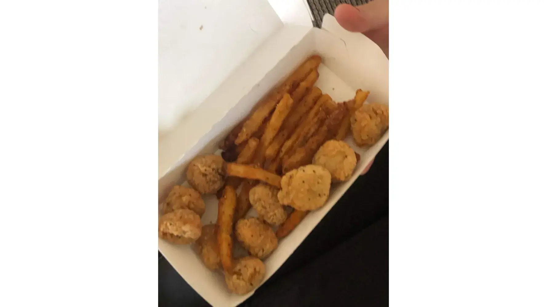 Ordered on uber eats and when I got it, it literally had 10 fries and 10 little chicken! WTF! For $4! I ordered 2 of these boxes and they were both like that! Only thing correct was the 5 tenders I got as well. This was on 4/25/22 at 4:30pm. Jordan from Uber eats is who delivered it and the bag was still still sealed shut from the restaurant preparing it...