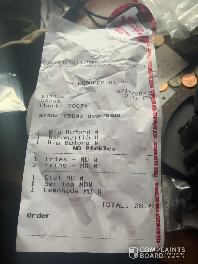 Read full complaintDrive thru