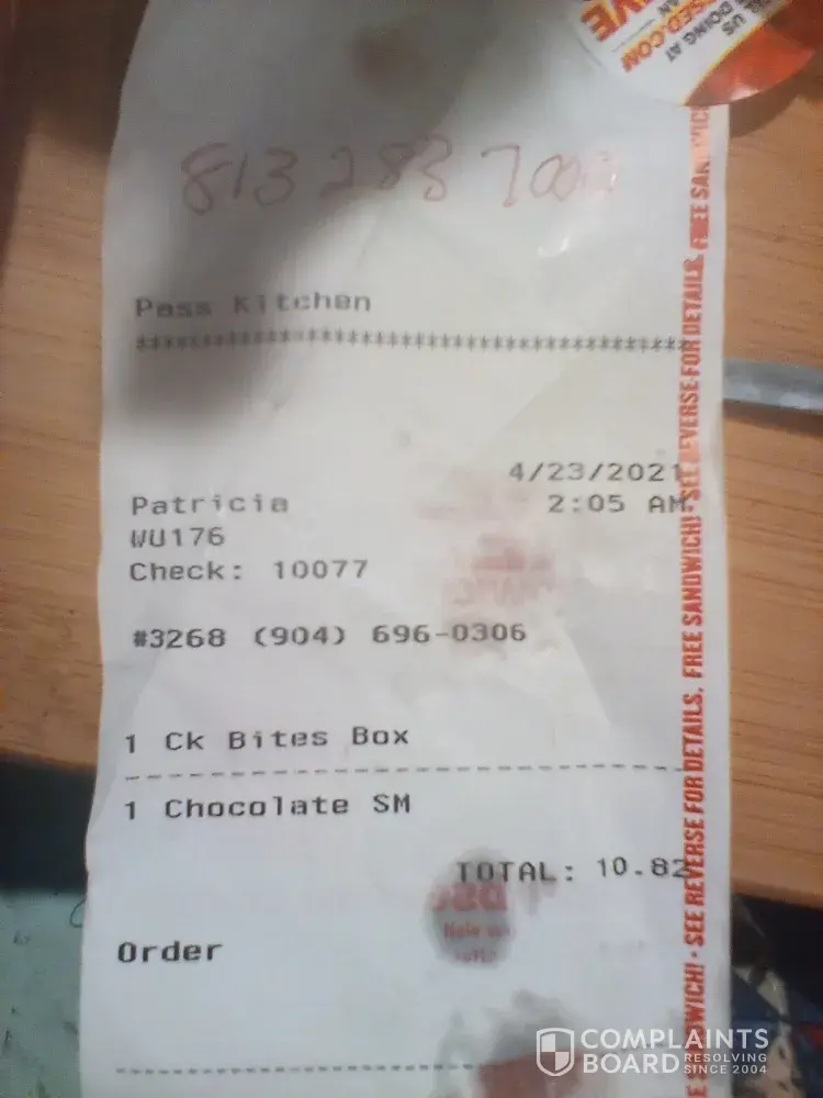 Read full complaintBad food! Staff lied about delay and refused to give refund.