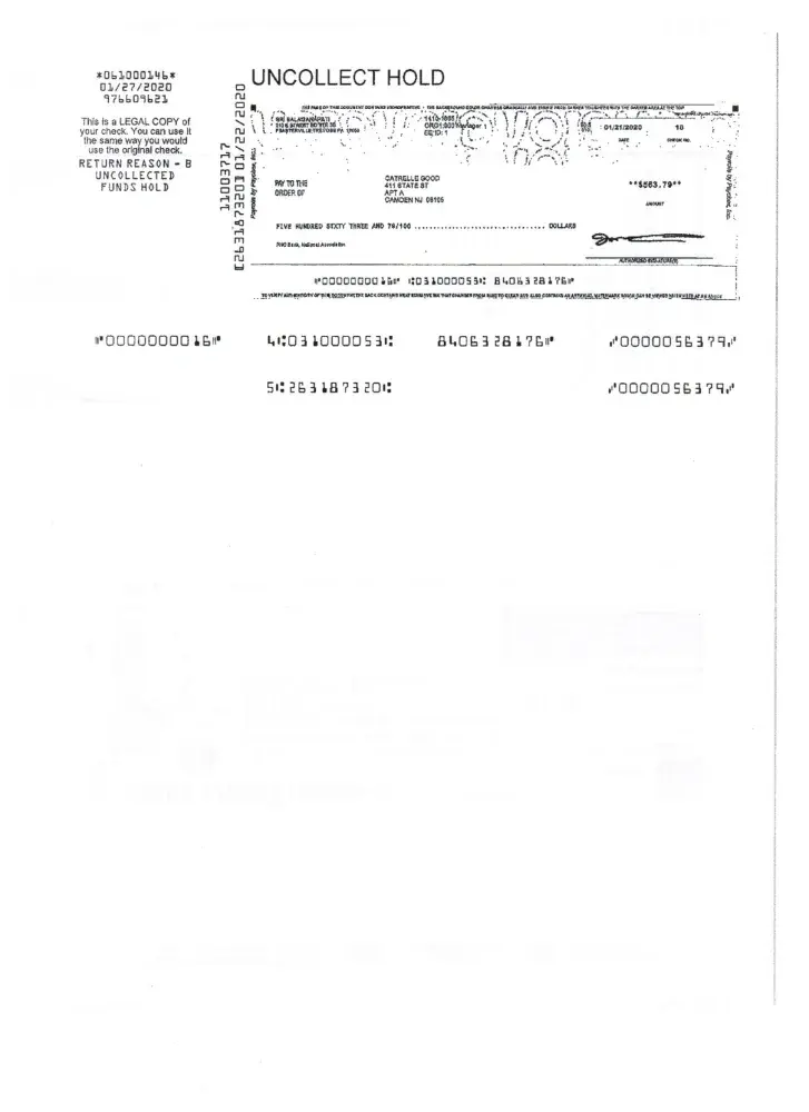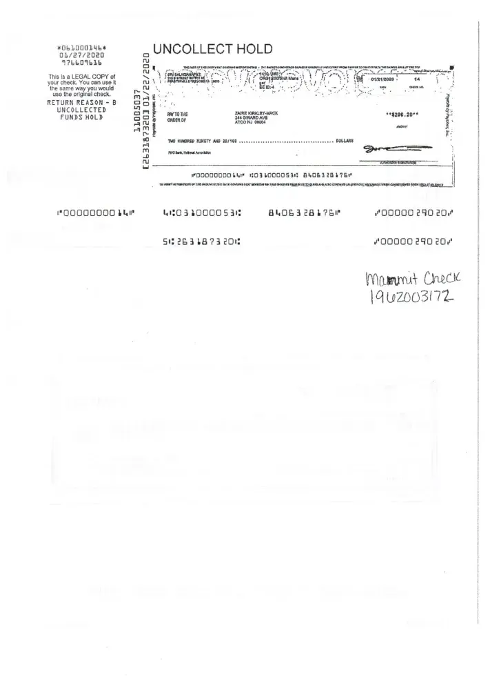 NJ 08104 . cashed employees checks $ 560.79 and $290.20 . The checks were returned for not sufficient funds. WE tried to contact checkers store and franchisee but they did not cooperate at all.