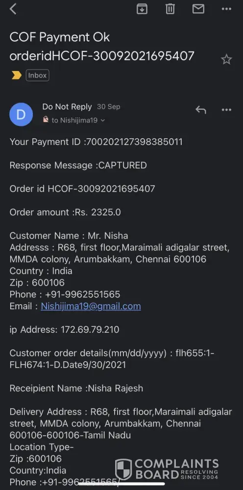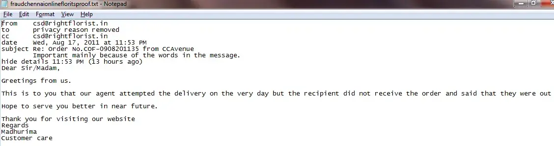 Chennai Online Florists complaints: history and resolution overview