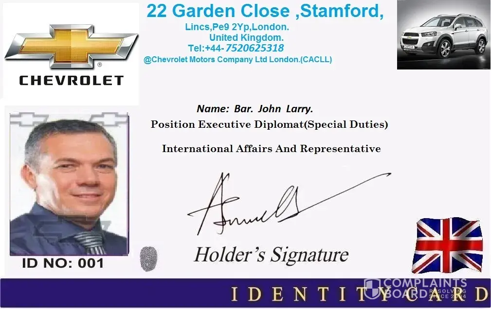 Congratulations on behalf of the 'chevrolet motors promotion united kingdom' our screening committee and national advisory board has completed all verification and screening by the screening committee of "uk's overseas national advisory remittance claims unit. you have been approved to received your demand draft and chevrolet captive car by a special delivery agent arrival been approved by the regulation council of the chevrolet motors promotion 2019. your cash prize. (3 crore 35 lakh rupees) will be delivered safely to your door step through our accredited delivery officer. having considered all possible measures to convey your cash prize, we have giving directive to our delivery officer in-charge, on which he is handling all our delivery and courier services. it is his duty to get your consignment been delivered to any respective destination. furthermore, we have started every arrangement in making sure that the delivery of this consignment is been done.