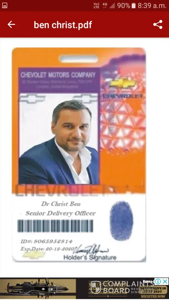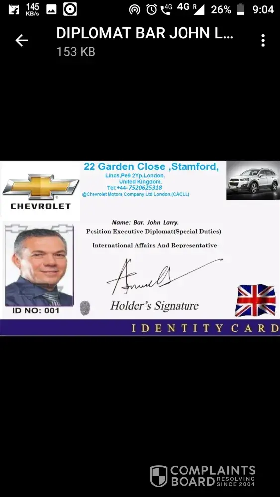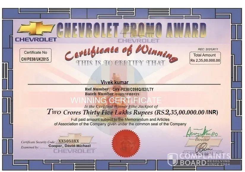 12 Chevrolet Car Lottery Promotion Award London Complaints