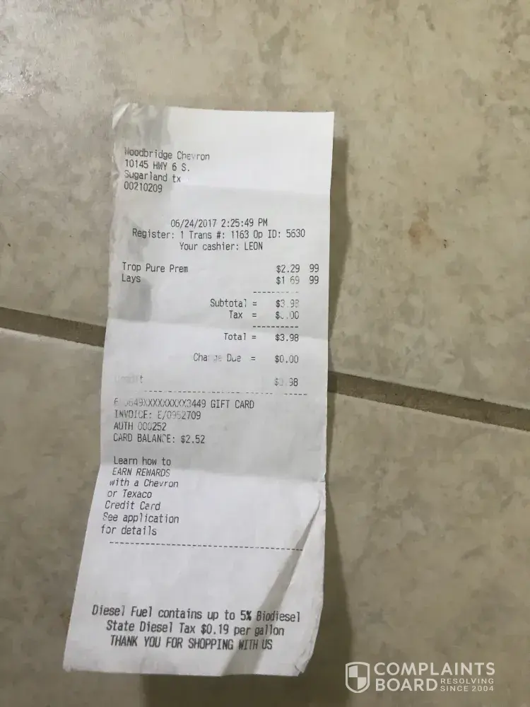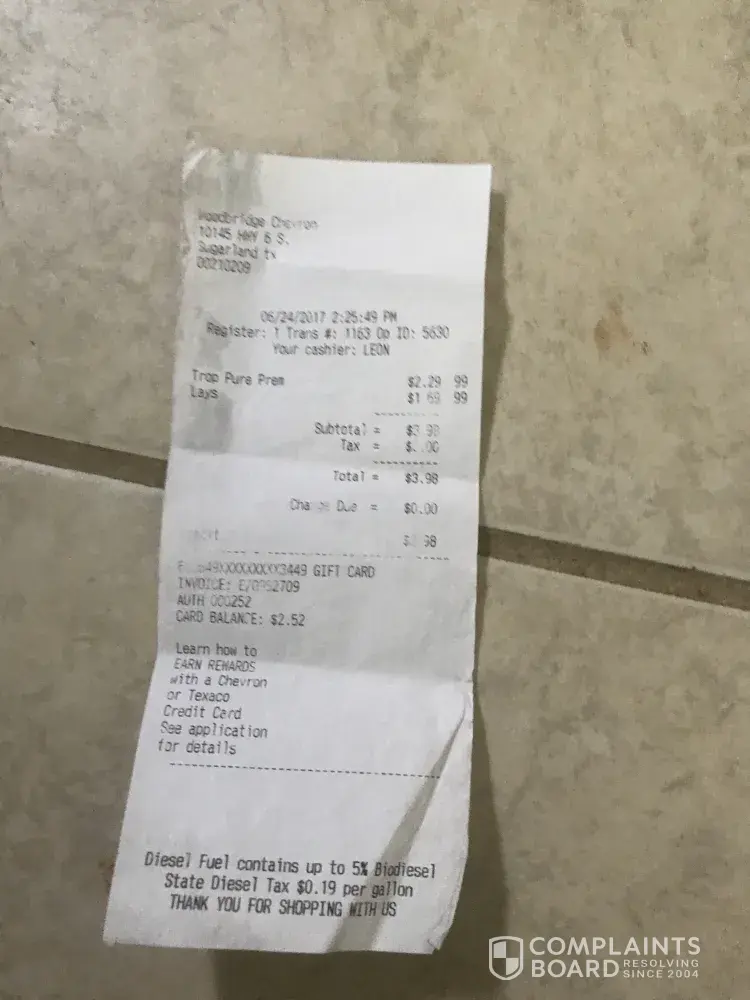 Chevron chevron didn't give me 4 gallons for what I paid?