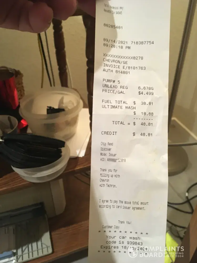 on October 24 th 2021 I stopped at the Chevron Gas station at the address