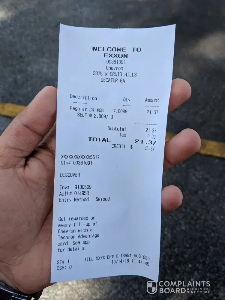 Today morning, I visited a Chevron gas station at 3875 N Druid Hills, Decatur, GA.