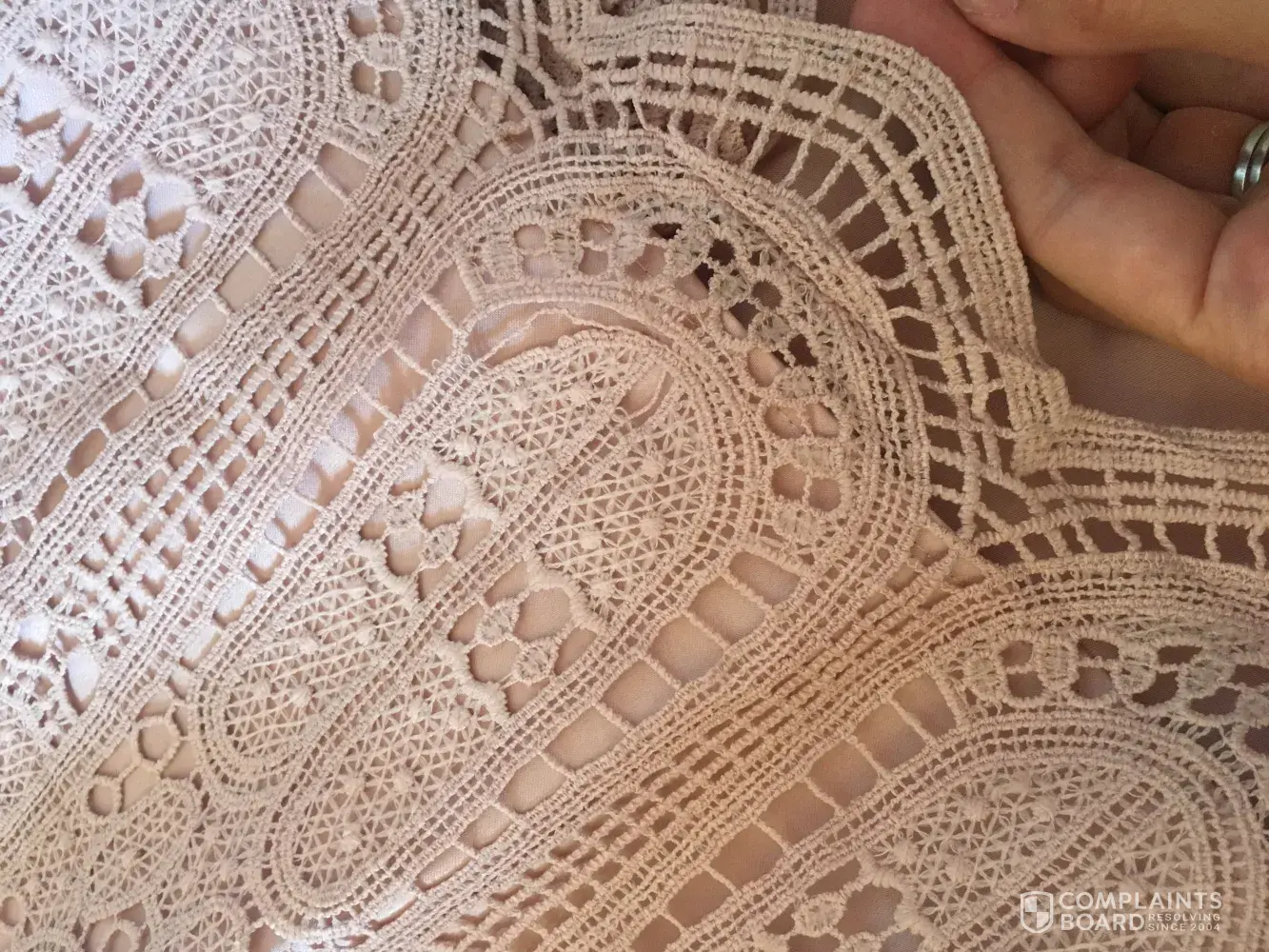 I bought this to wear to a wedding on saturday. I opened it to put on and as i sat down part of the pattern on the front was missing compared to the rest of the dress. I sent back the dress I originally tried on and two others of fine quality, as i am used to from Chi Chi over the past few years. This is not the quality i expect as I regularly buy from and recomend chi chi. The thread due to be in the gap is completely missing.