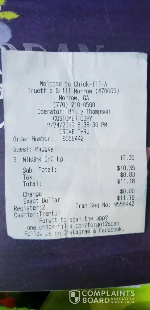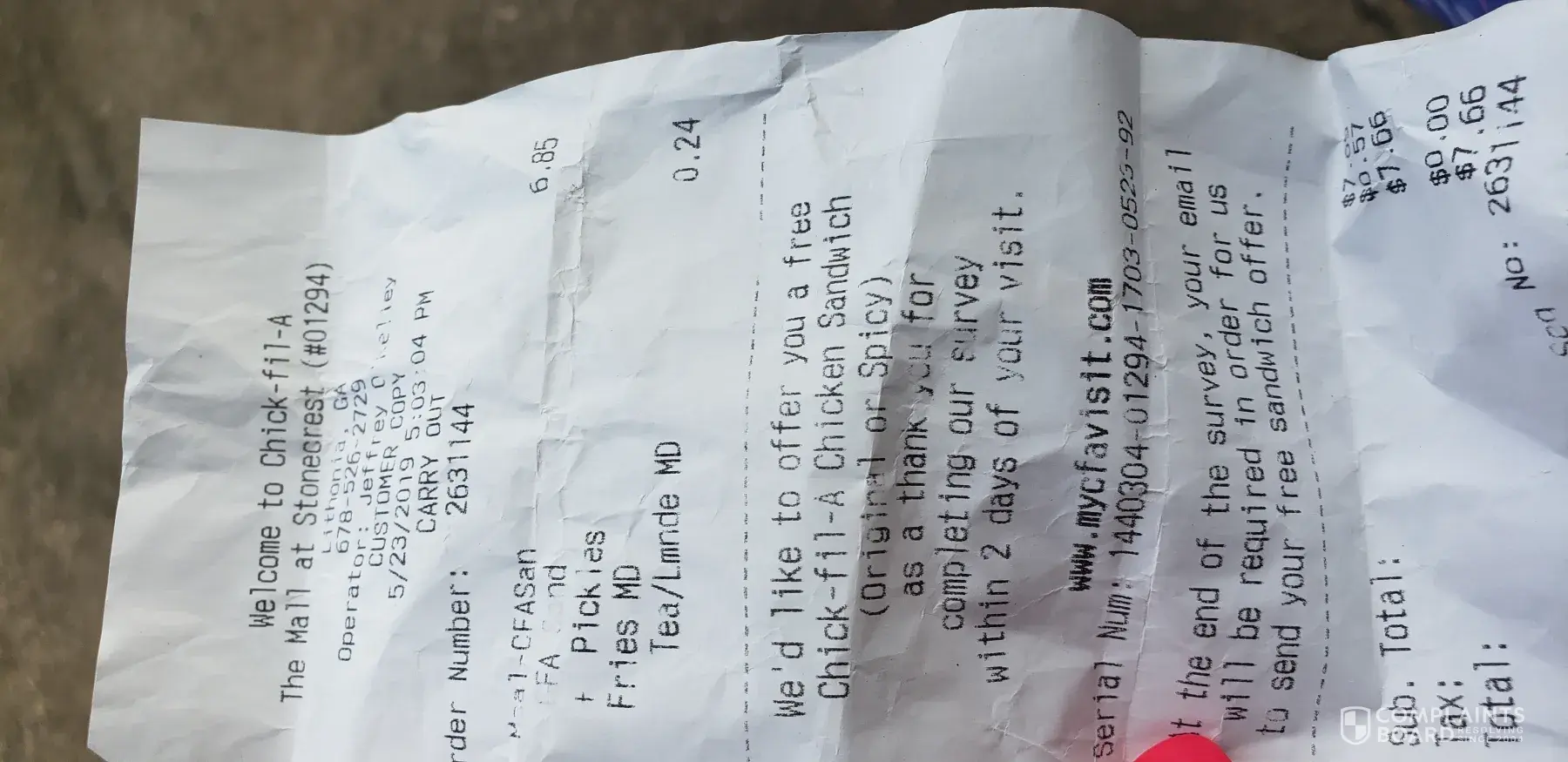 August 19 2019 at 10:12 am 414432 Dylan, Chick-Fil-A Thomas Edison Travel Plaza StoreID: CFA01