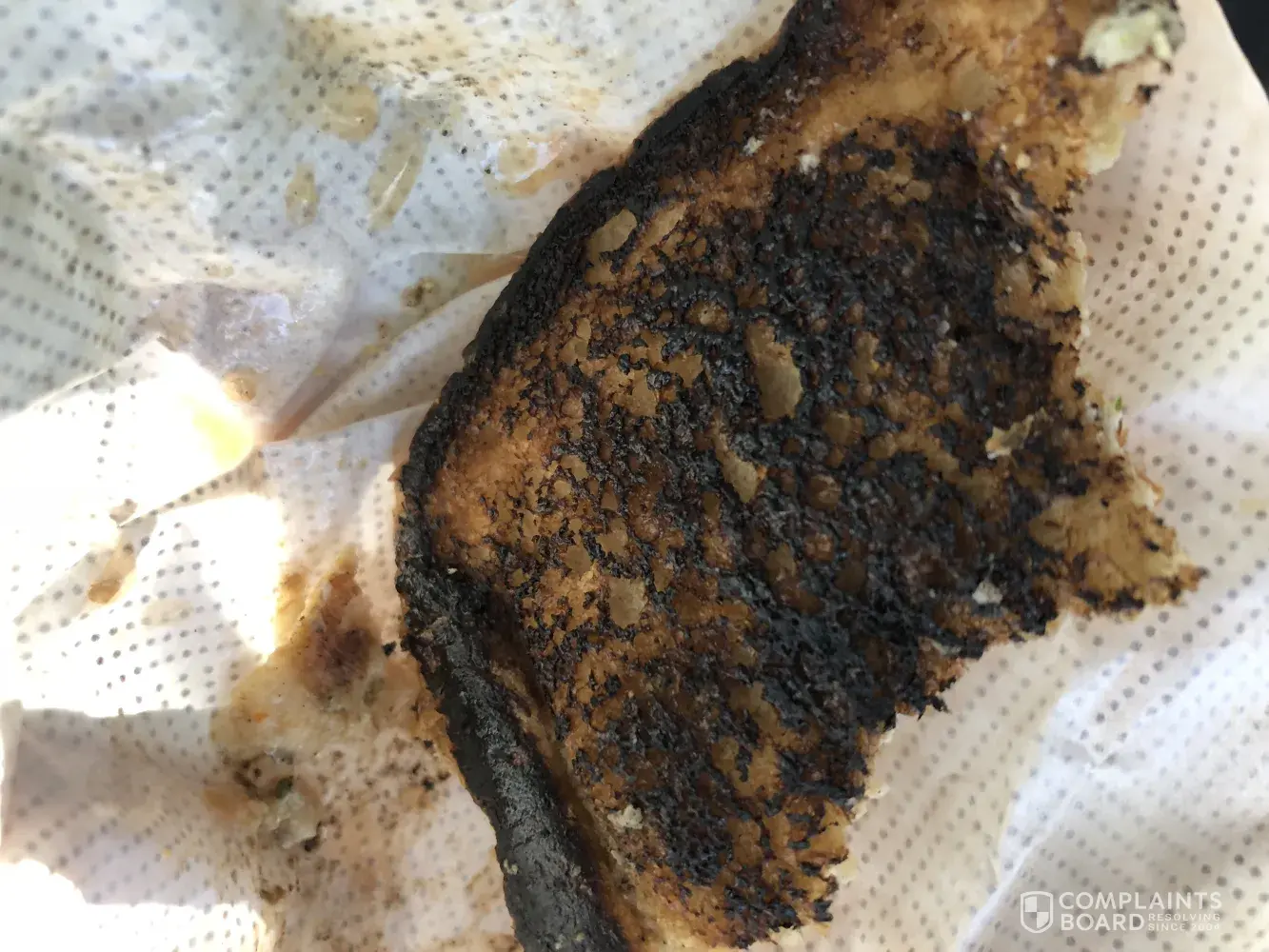 I was very hungry, so I grabbed the sandwich as soon as I picked it up to almost finish the sandwich before I realized the buns were completely burnt.