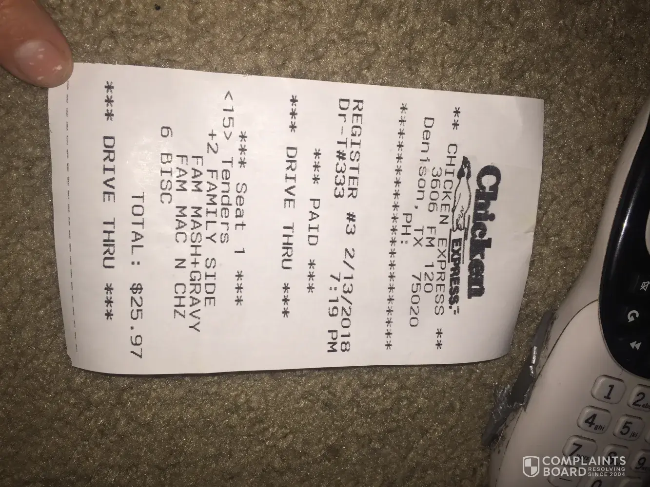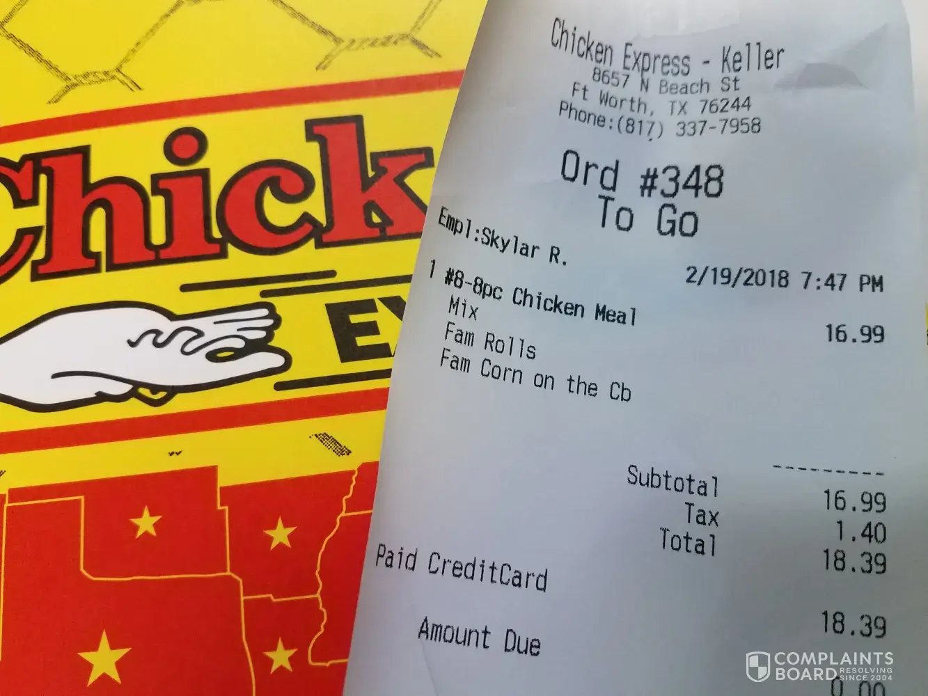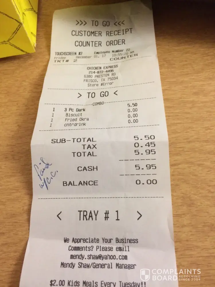 Chicken Express being given incorrect receipt
