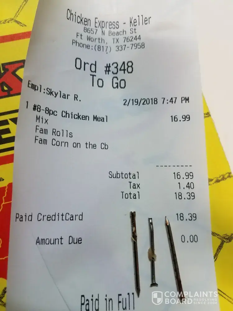 Chicken Express "nails" found embedded in chicken!!!