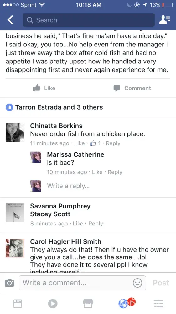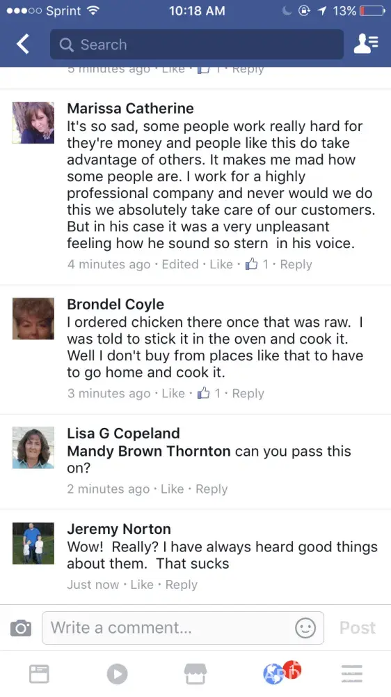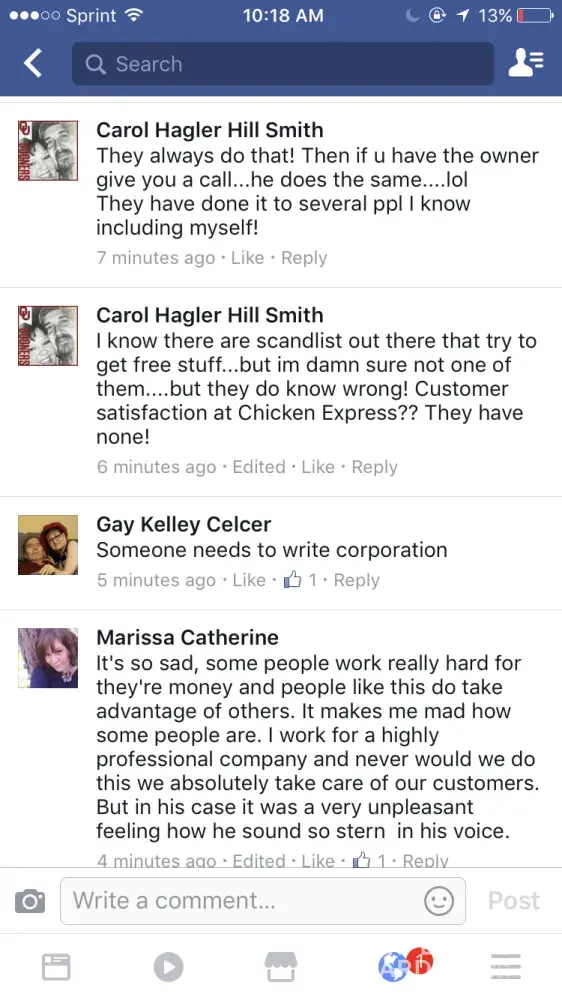 Of yesterday. I kindly asked her to remove the post she about my minor son she has not so I am forced to take action . No one will call me back from the office of chicken express something needs to be done about this woman she is causing things for my child that is a minor problems at school and for her to post his picture on a buy sell trade site and say she is the general manger is just out rageous. If she had an issue with my son she should of contacted me his mother. My name is Jodie Murray I can be contacted at [protected]