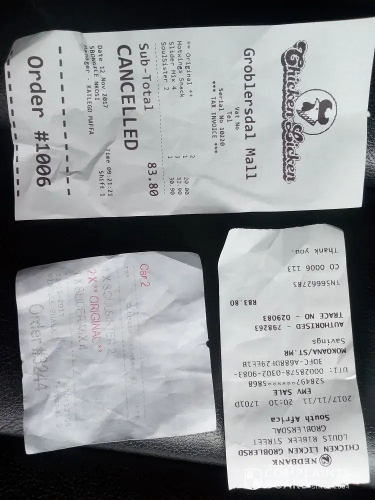 Chicken Licken bad customer service.