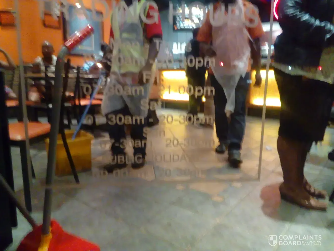 Standing in line at the Menlyn store at 19:45, a worker began closing the doors, and I was then told they are now closed, and will not serve me. I am surprised that this is the only outlet in the food court that closed early, whilst all the others are open. It is either the staff just stopped making the chicken, or it was a blatant refusal of service. Since there is no signage indicating open and closing times, staff take it upon themselves to close whenever it pleases themselves, and chasing patrons away.