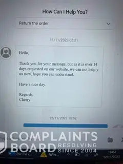 I explained this and asked them to look back on the chat to which they told me I was still out of the 14 days. This is absolutely ridiculous and unfair as I had met the returns window.