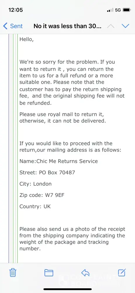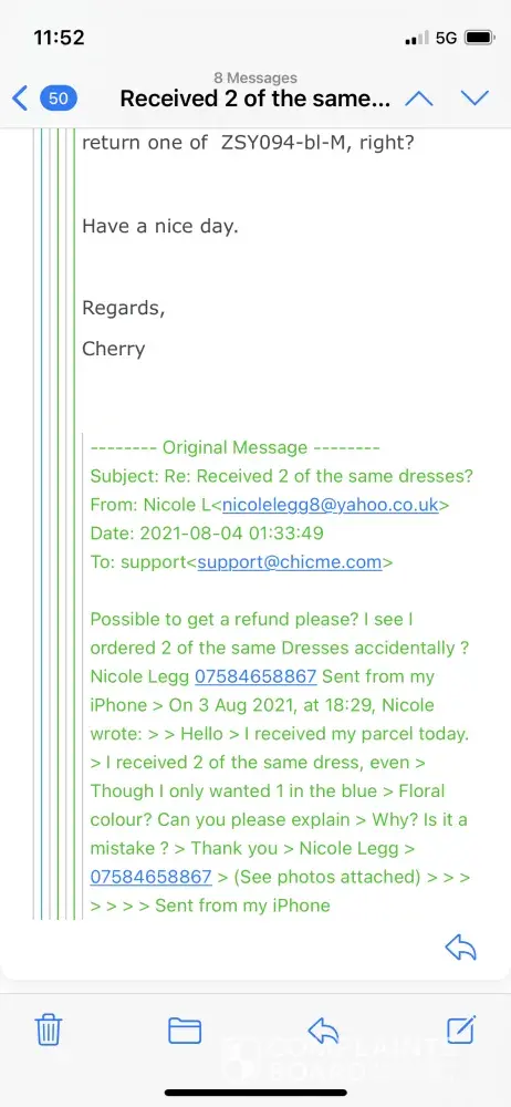 Wrote into Support at Chicme requesting a refund and then decided to go for an exchange. Received an initial email from Cherry who was very polite and helpful and then a very nasty cheeky email from Cherry saying that I cannot get a refund or exchange after they manipulated me into sending the dress back!? Wow! It was about 2 weeks ago that I first contacted them to get a refund and they are saying that since It had been over 30 days ago since I first contacted them regarding this matter that now they won't refund or exchange it? I have bought so many things from them as well. Terrible, total liers. I was in bed with Covid for a week self isolating and that's why It took me a bit longer to send it back but it was certainly not over 30 days. Awful