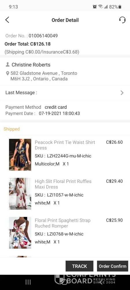 I purchased 18 clothing items from ChicMe and they sent me 1 dress just to show that they have a tracking# so they could commit fraud and Paypal would think they sent me my order. Order was done 04/03/2021 and I have not received the 17 items remaining in order. I have requested that ChicMe refund for the 17 items not received to date. I have included photos to show proof that they have not sent the remaining 17 items, as well as a photo of the small package that shows 18 clothing items could not fit in that small package.