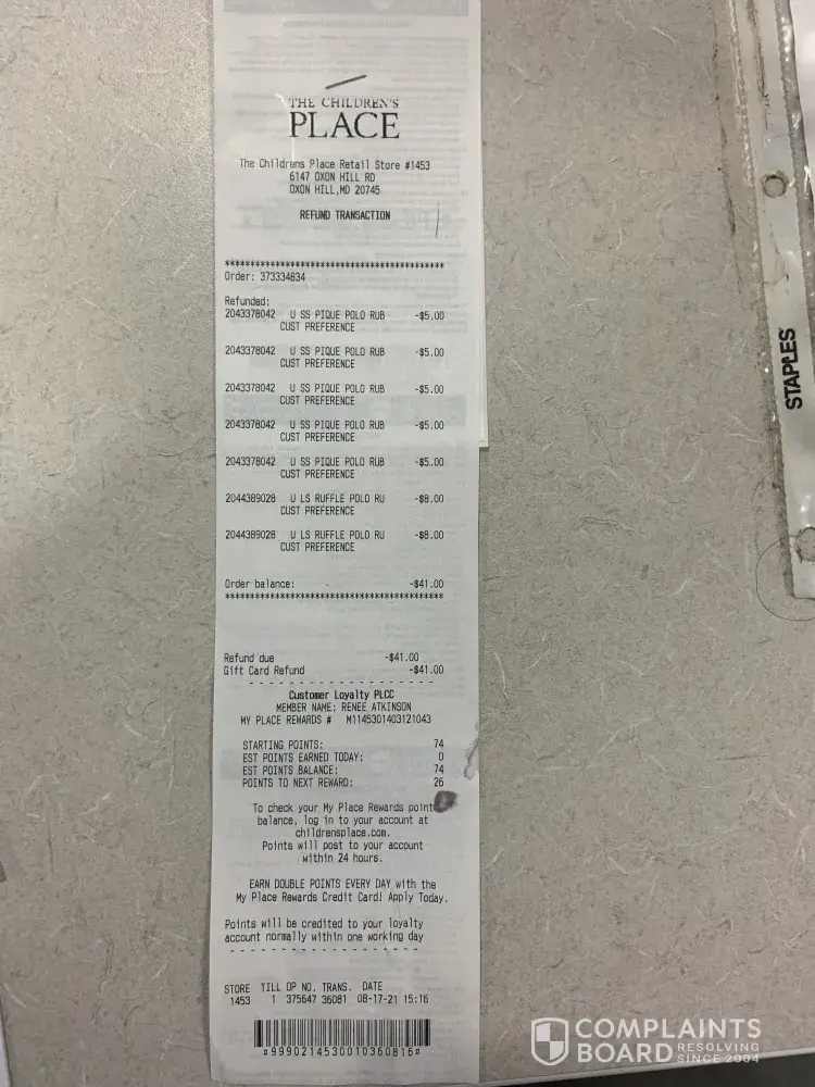7/21/2021 Today I went into my local Children's Place store in Brentwood, CA. I had 3 pairs of unworn uniform pants with the tags still on from the previous school year. I unfortunately no longer had my receipt but did purchase the items on my Children's Place credit card. When I arrived to the store I was told by the employee that I could exchange the...